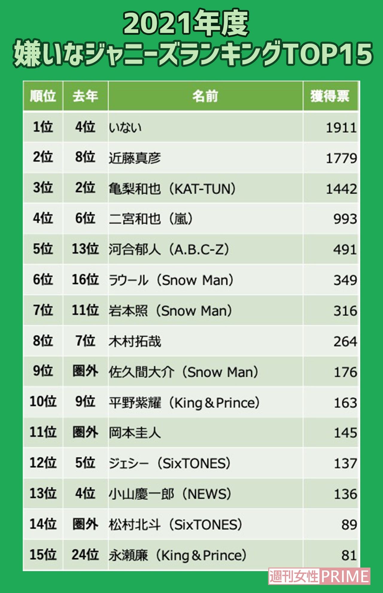 嫌いなジャニーズ 16 30位に5人の新顔 Snow Manの勢い反映か 21年6月26日掲載 ライブドアニュース